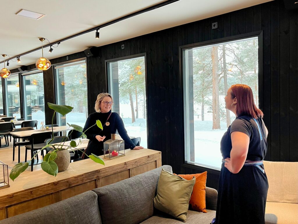 ”Lapista minulla ei ollut kokemusta, mutta yksi kaveri oli työskennellyt Saariselällä pari sesonkia. Kävikin kuitenkin niin, että Juutuan hotellijohtaja Pirita bongasi profiilini ja pääsin tänne haastatteluun kesken pimeän talven. Minut valittiin lopulta tehtävään, ja joulukuun puolivälissä olin jo täällä.”, Emilia naurahtaa nopeaa matkaansa.